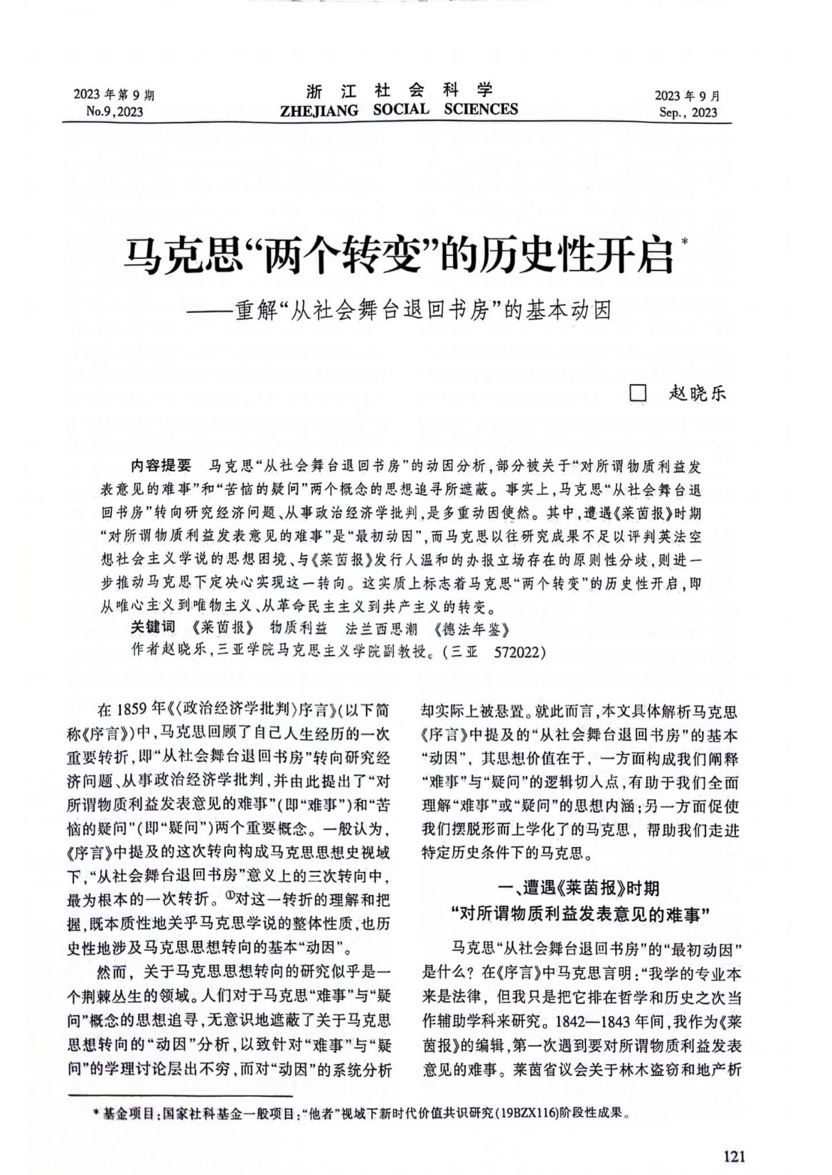 赵晓乐:深耕马克思主义理论研究,解码思想转变核心动因