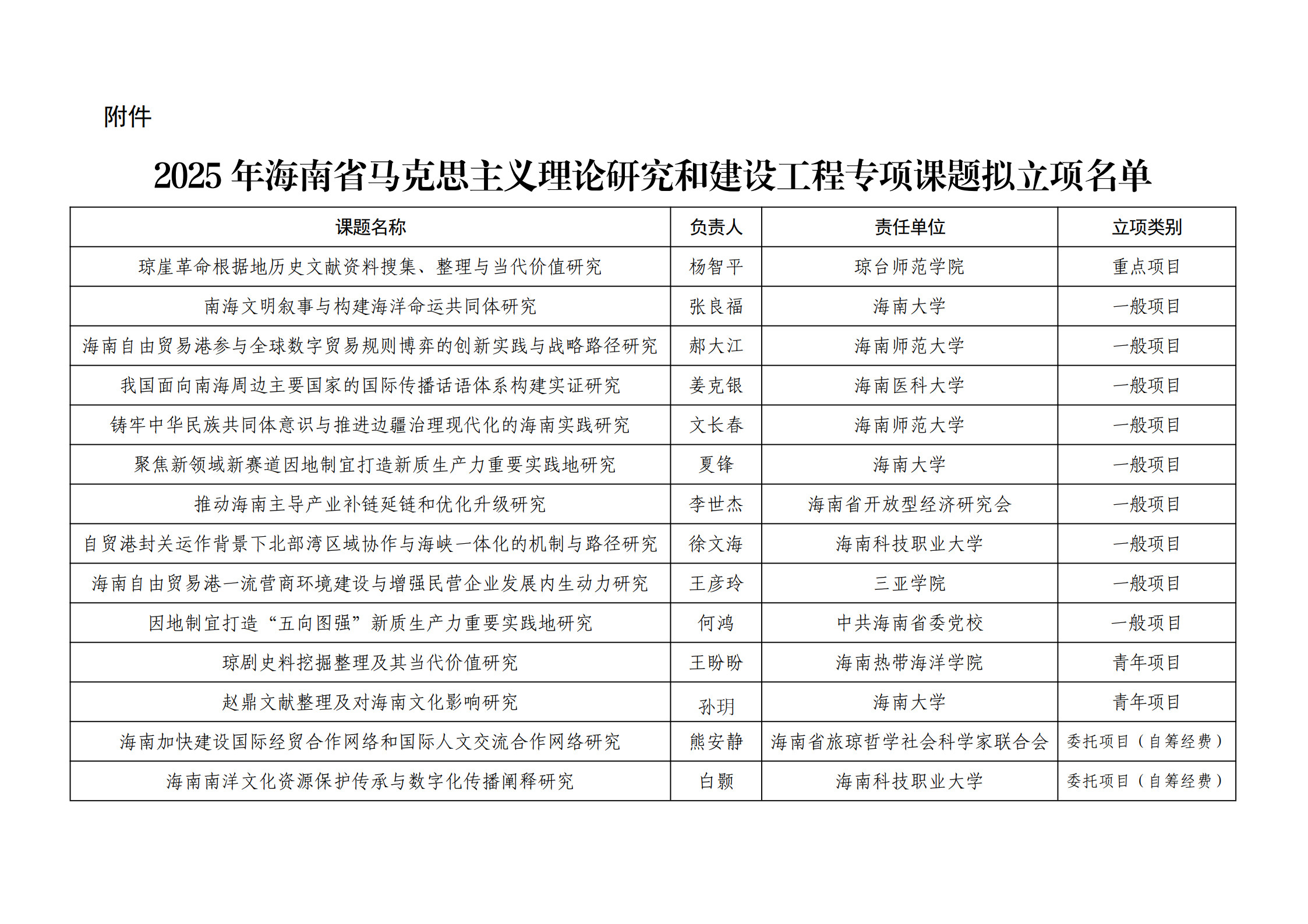 9月9日,我校再获立1项海南省马克思主义理论研究和建设工程专项课题。2025年海南省马克思主义理论研究和建设工程专项课题共计立项14项,我校马克思主义学院王彦玲教授及其团队获立1项一般项目,项目名称是《海南自由贸易港一流营商环境建设与增强民营企业发展内生动力研究》,课题团队成员长期致力于企业发展动力和营商环境研究,有着较好的研究基础,身处海南自贸港建设大潮,团队更希望能够为自贸港民营企业内生动力的激发和一流营商环境建设建言献策、尽绵薄之力。