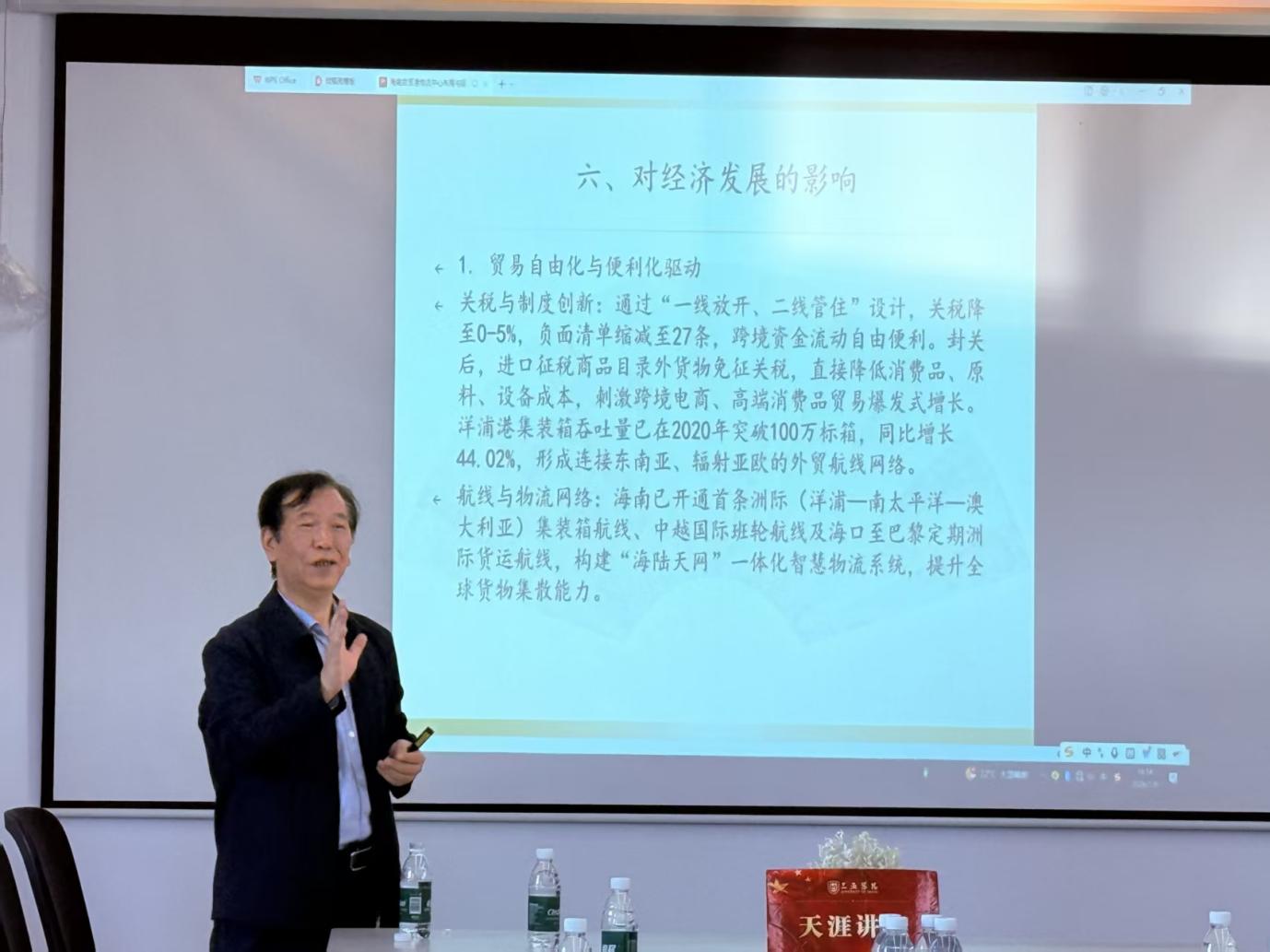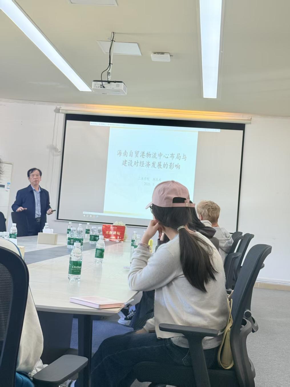 1月9日下午,盛宝金融科技商学院刘龙政教授在社科楼423为数字经济系学生开设了题目为《海南自贸港物流中心布局与建设对经济发展的影响》的专题讲座,该讲座也是三亚市“天涯讲坛”系列活动的组成部分。刘龙政教授从海南自贸港物流中心布局与建设出发,深入分析了物流中心对自贸港经济发展的多方面影响。